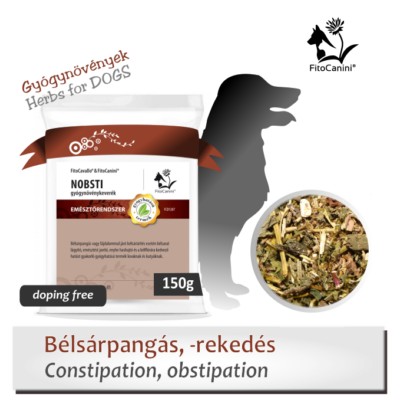 A NOBSTI keverék természetes eredetű, kizárólag gyógynövények felhasználásával készült. Nehezen emészthető anyagok, száraz takarmány, vízhiány, mozgáshiány, gyenge emésztés, elhízás, végbélnyílás- vagy prosztatabántalom okozta ürítési fájdalom miatt kialakuló bélsárpangás esetén a bélsár hígabbá tételére, enyhe hashajtásra alkalmas gyógyhatású termék. Obstipáció esetén vagy végbélműtéteket követően lágyítási céllal az állatorvosi kezelés kiegészítésére javasolt.