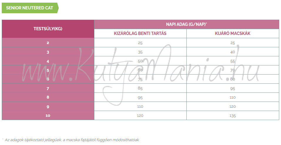 Ivartalanított macskáknak, 10 éves kortól