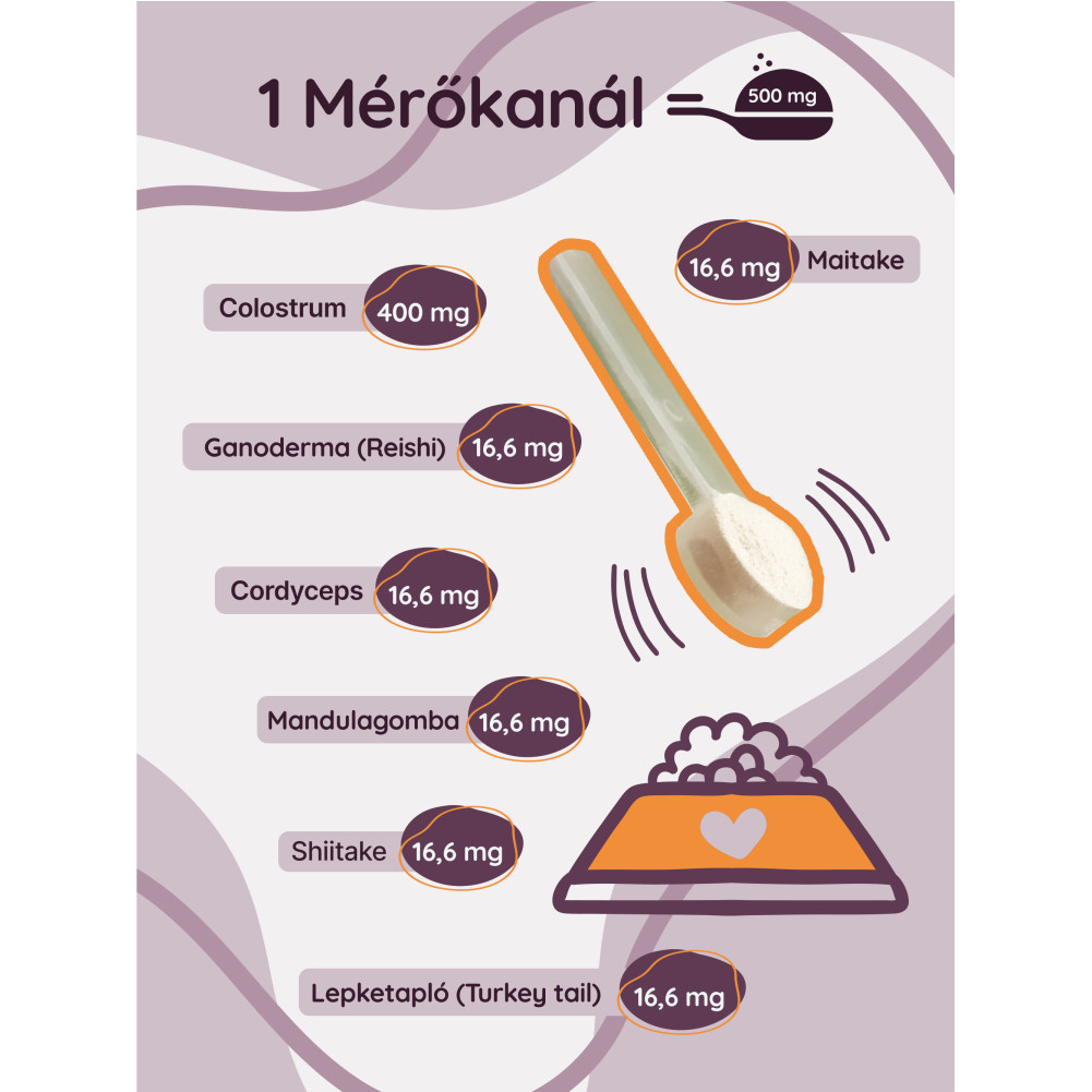 - Gyógygombákkal kiegészítve – az immunmoduláló és sejtvédő hatás érdekében